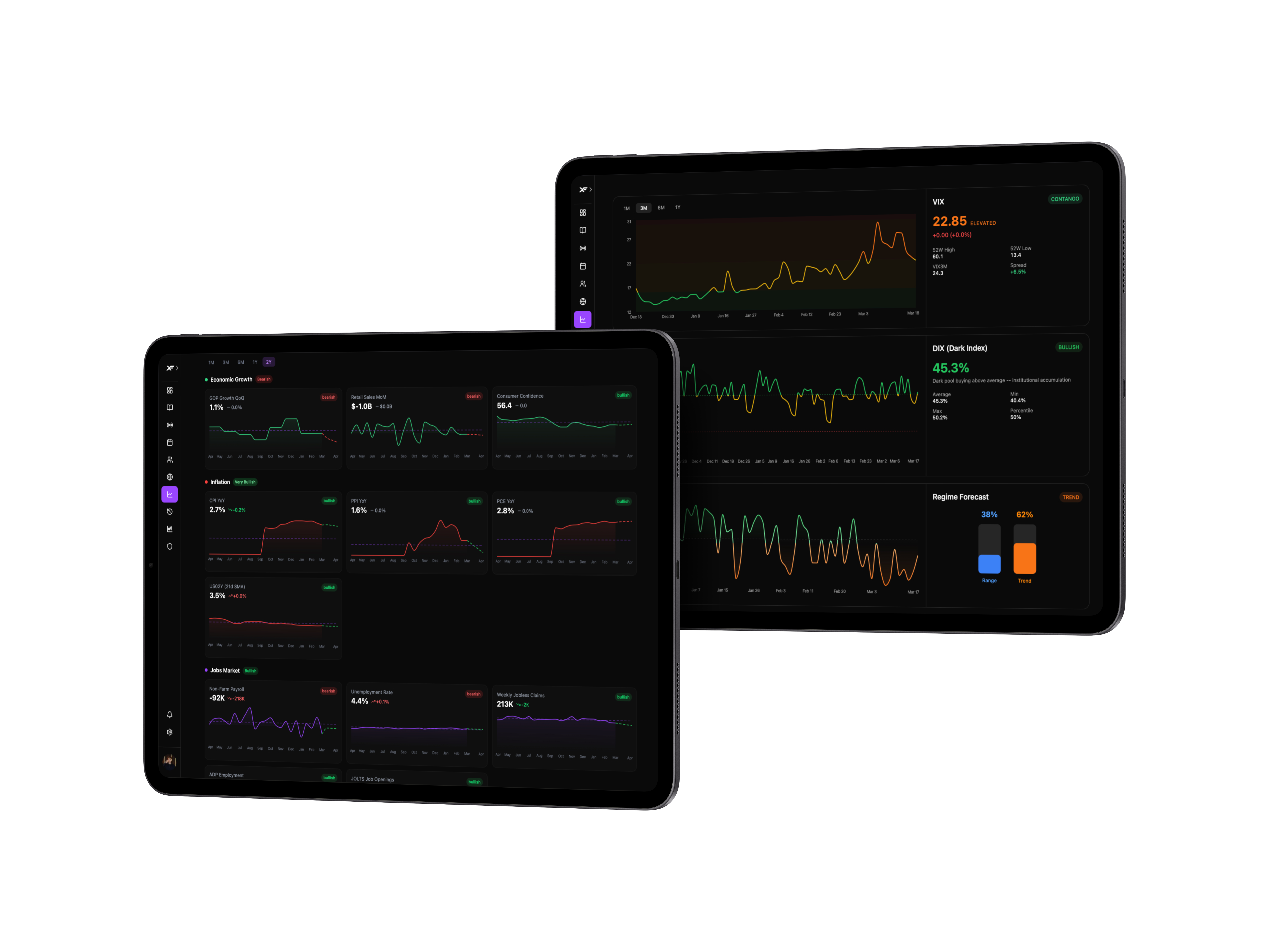 Get a complete overview of the macroeconomic landscape in one place. Analyze key indicators, market trends, and institutional positioning to understand what is driving the markets right now.